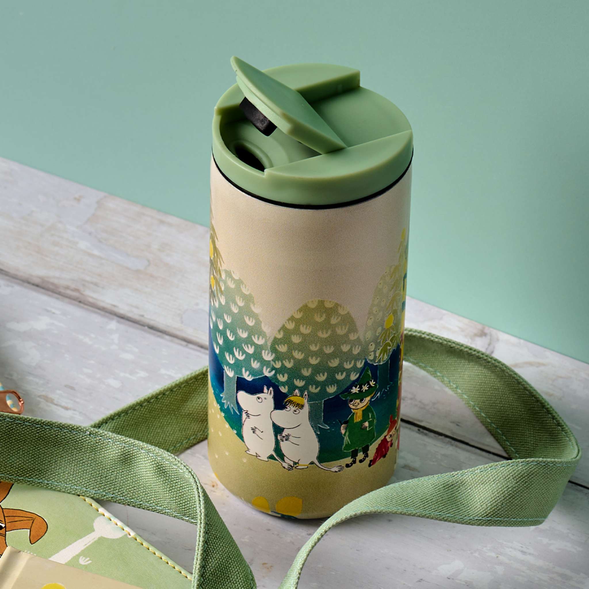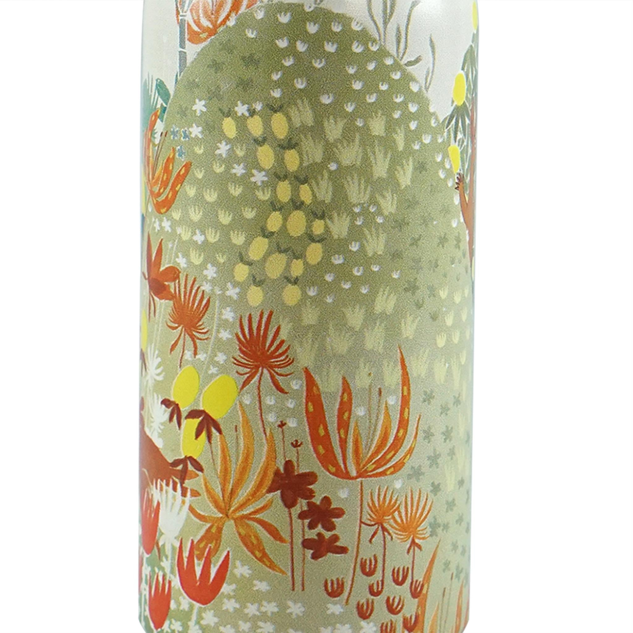 This metal travel mug features Bonnier Carlsen forest illustration, using fresh green and yellow tones that reflect spring and summer landscapes from the Moomin world. Practical and lightweight, it offers an everyday drinks solution with a calm, nature inspired design.