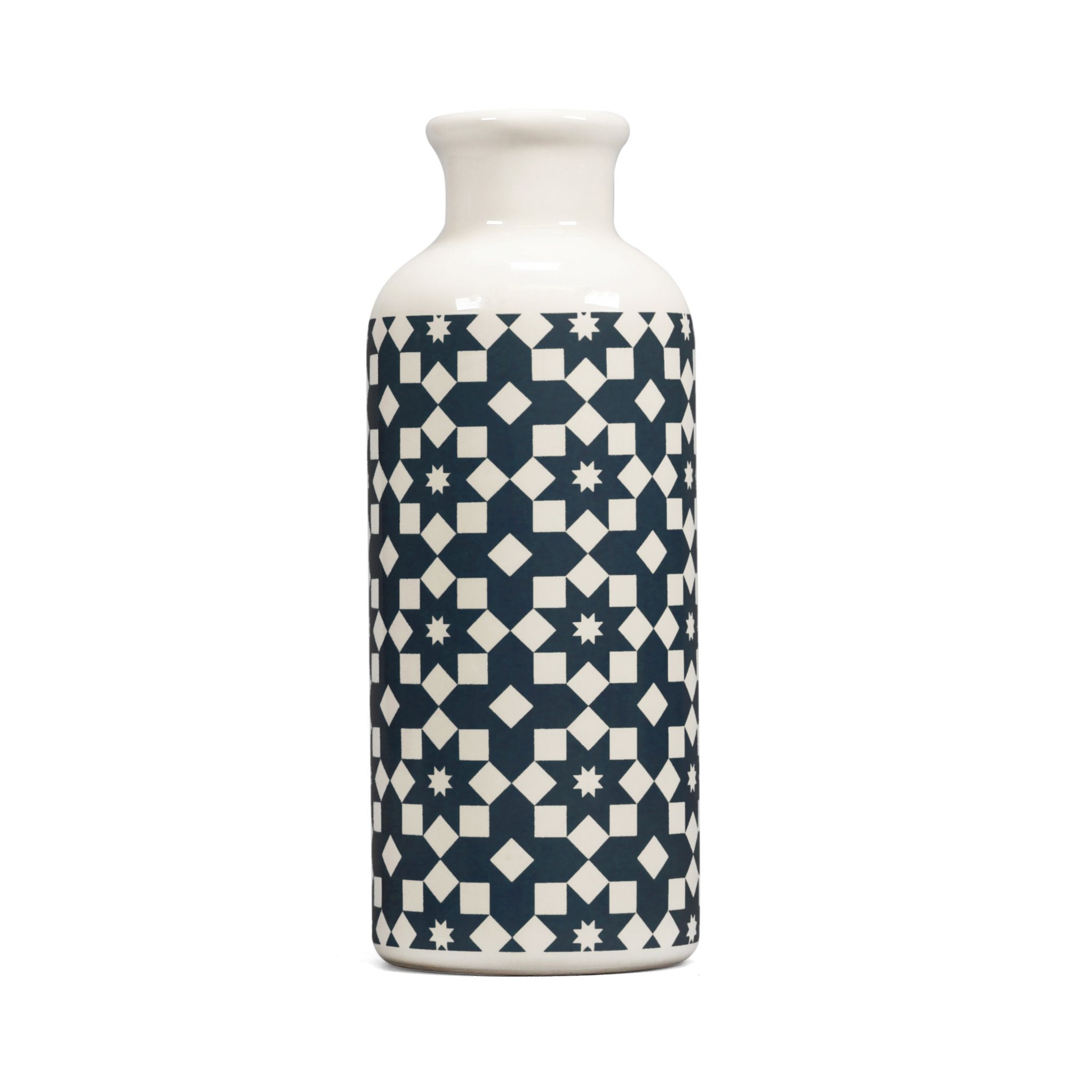 Vase Ceramic (20x7.5cm) - Tiles (Dark Blue)